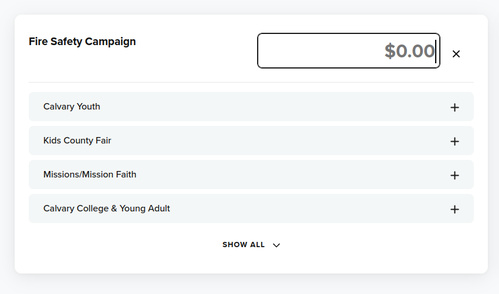 Make sure to select "Fire Safety Campaign" as the category when giving online